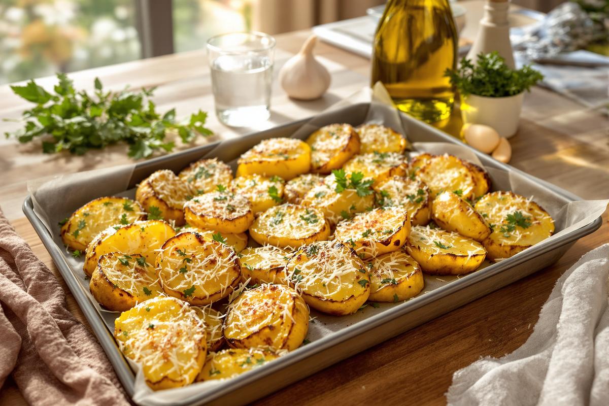 - Ne surchargez pas la plaque : les patates doivent avoir de l’espace autour pour bien dorer.